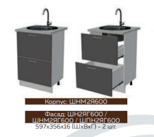 Глубина нижних шкафов без учета столешницы:490 мм, с учетом столешницы 600 мм