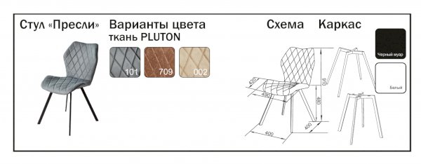Стул Пресли (Mister Chair) – товар доступен к покупке в интернет-магазине dommebeli-v-sankt-peterburge.ru. Цена – 6 014 руб. без учета доставки. Стоимость дополнительных услуг и сроки получения мебели уточняйте у менеджера. Возможен безналичный расчет, оплата по карте на сайте.