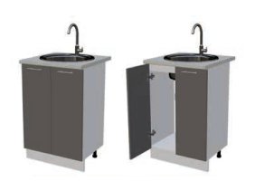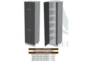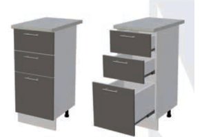 Глубина нижних шкафов без учета столешницы: 444 мм, с учетом столешницы 600 мм