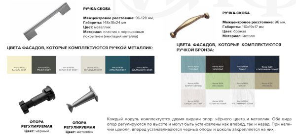 Все модули комплектуются стандартной фурнитурой. При желании можно дополнительно заказать другие ручки.
